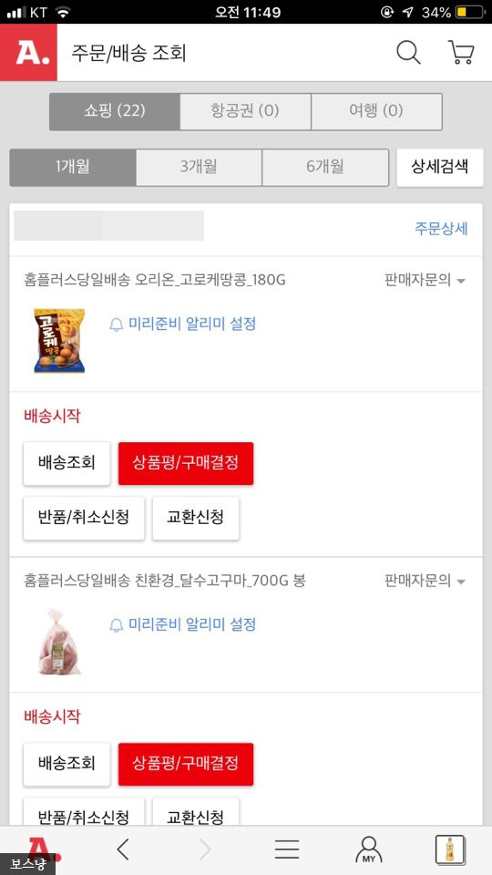 품절때문에 빠진건 고대로 취소로 처리되어 적혀있고, 제대로 가격부터 수량까지 기대된