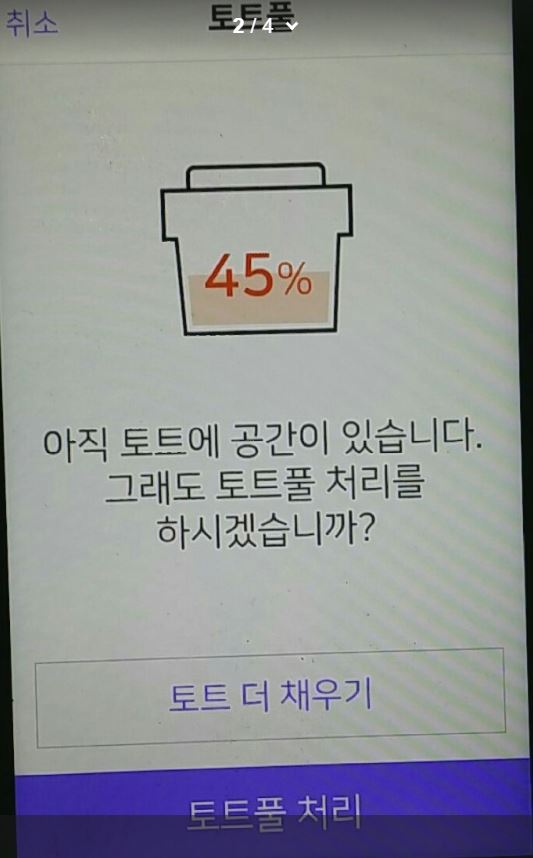 그럼 '토트풀이 완료되었습니다. 새토트를 준비해주세요'와 같이 뜨게 되고